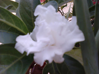 The flowers are a pure white, just like white roses. The tagar plant has lots of medicinal uses one of them being sedative. The beautiful white heavenly blooms covering the green plant look very attractive in this winter climate.